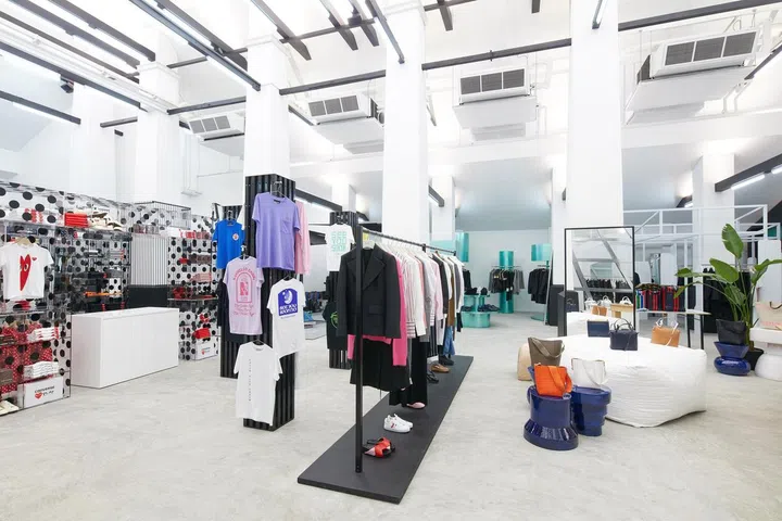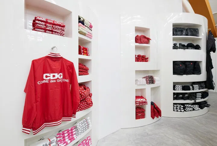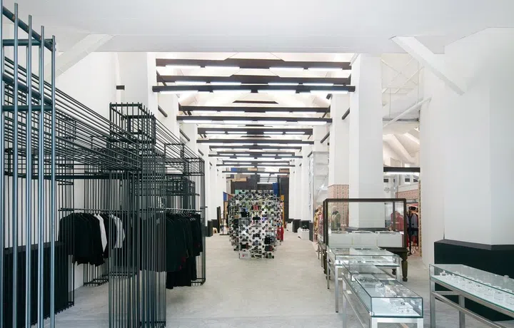 Kawakubo converted part of an army barracks in the hip Dempsey enclave into a spacious boutique within the COMO Dempsey complex. "I want to create a kind of market where various creators from various fields gather together and encounter each other in an ongoing atmosphere of beautiful chaos; the mixing up and coming together of different kindred souls who all share a strong personal vision," Rei commented of her design.