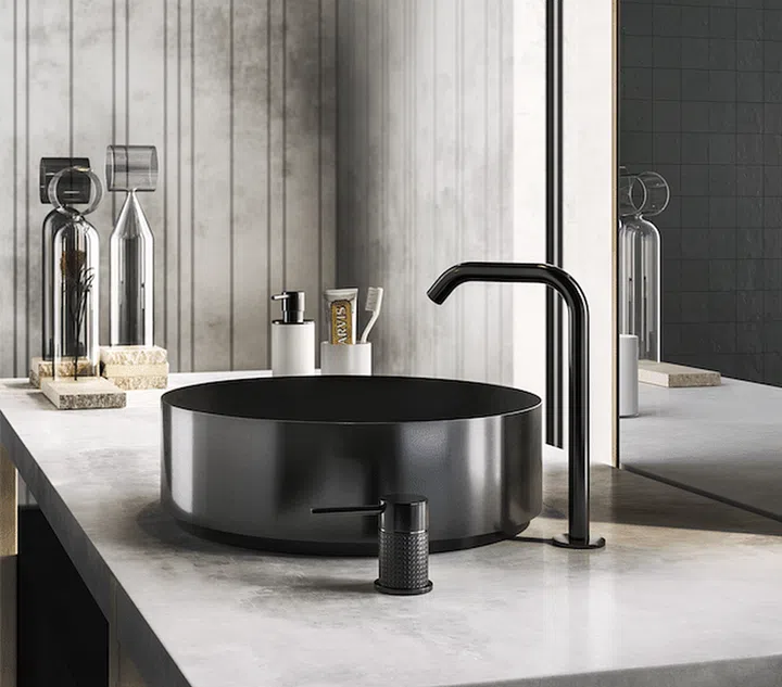 Complete the look of your black bathr oom with the Gessi 316 countertop basin that’s super sleek. Made of stainless steel, the black metal brushed finish adds to its sophistication and elegance.