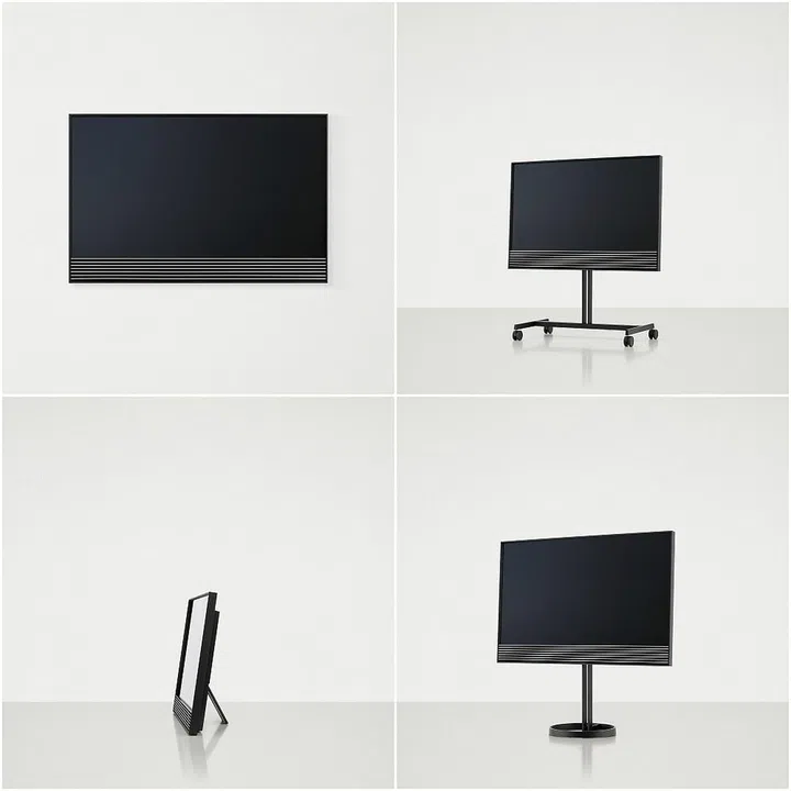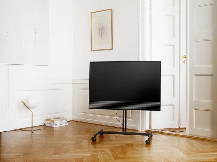 As for the TV, with a sleek and slim design, it can be stylishly integrated into your interiors in a variety of ways — whether you have it on wheels or wall-mounted.