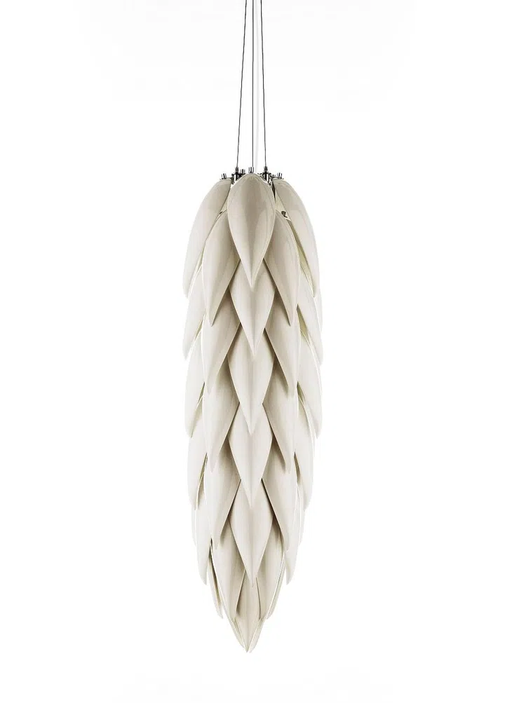 Each realistically crafted ceramic plant form is an expression of Jeremy's homeland, known for its natural scenery and flora. The delicate pieces are kept white, highlighting the beauty of the material and allowing a gentle glow of light to further enhance it.