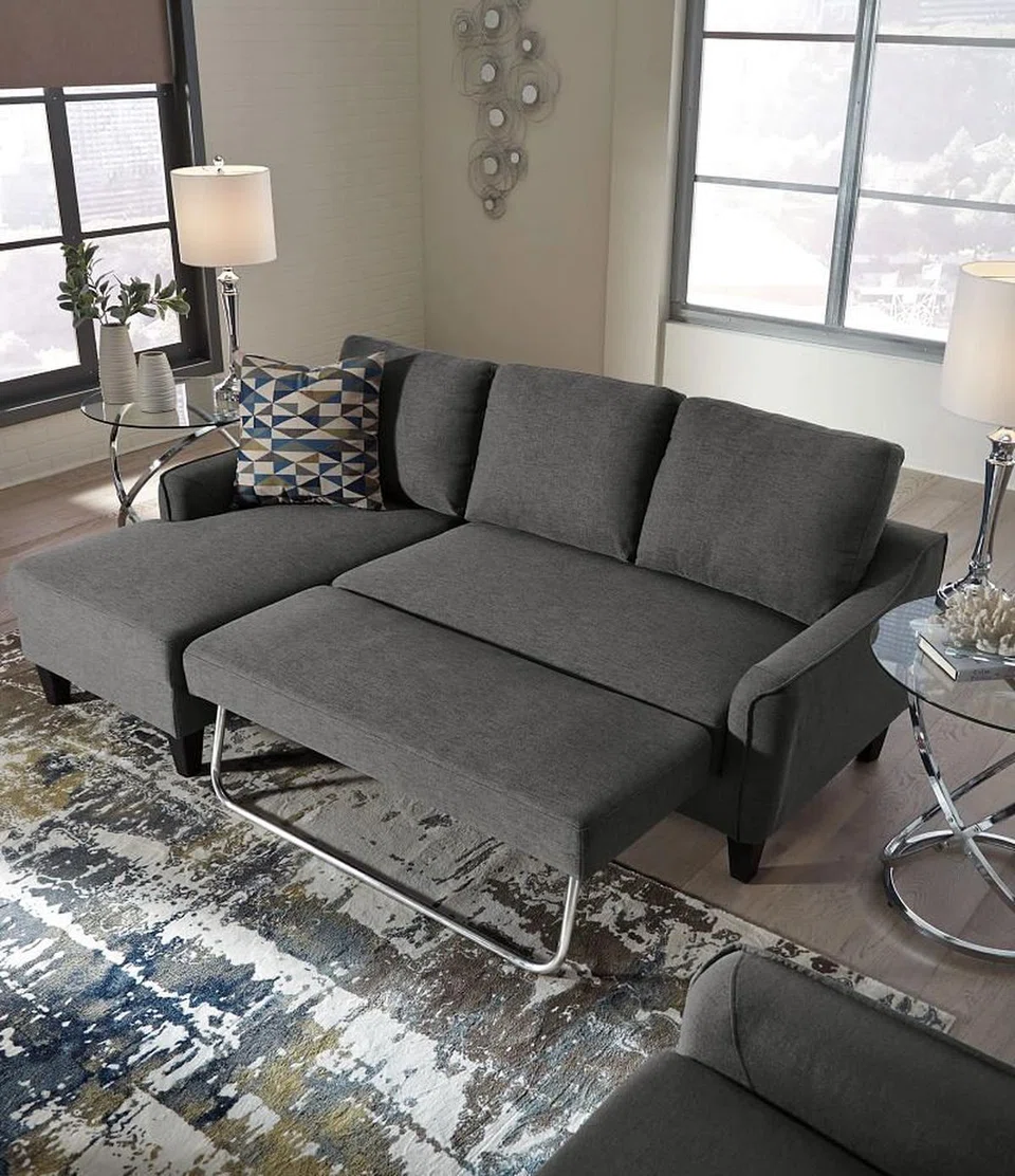 Ashley Furniture Jarreau Sofa Chaise Sleeper (RRP: $1,399)Dimension: W210 x D 135 x H 91 cmLoose cushionsHigh-resiliency foam cushionsPolyester upholsteryIncludes a pullout cushion that sits atop a supportive steel frameExposed feet with faux wood finish