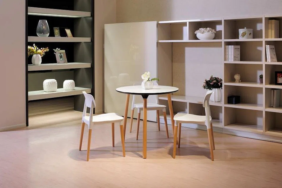 Modern Living Pawel 036-3 round dining table (RRP: $439)Dimension: Ø100 x H 75 cmPremium MDFMelamine Veneer TopBeech Wood Legs