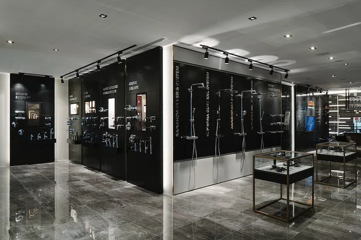 The ground floor of Grohe’s expansive duplex gallery is filled with the brand’s latest sanitaryware products.