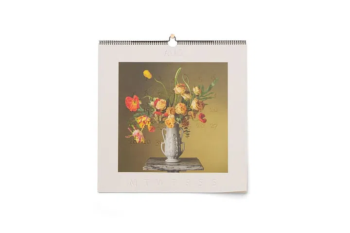 Inspired by the life and work of the late British florist Constance Spry – who was celebrated for pioneering a more bucolic and woodsy approach to floristry in the 1930s – Meisel shot a series of 13 photographs for a Loewe exhibition last year that has been translated into the visual calendar below.