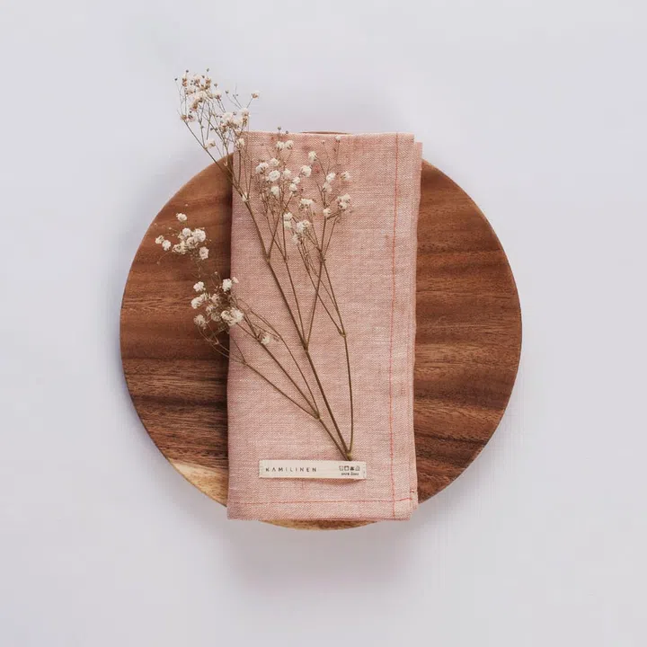 2. Organic napkins in coral, $32 for a set of two, from Kamilinen, www.kamilinen.com