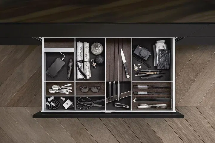 With the complementary interior fittings that utilise every inch of space, you gain up to more than 30 per cent of the space of the average kitchen — and it even allows you to integrate an entertainment system!