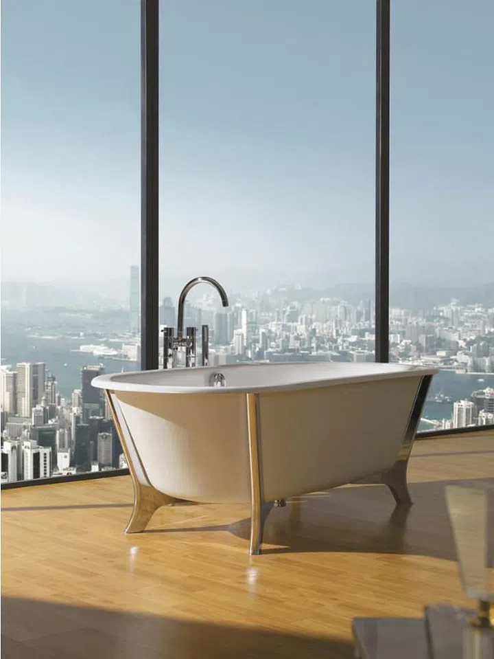 If you’re looking for a bathtub that will last you years, one that is made from cast iron will promise you that durability. This one by Japanese bathroom specialist Toto features an ultra-sleek design with chrome legs for a futuristic vibe.