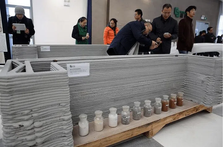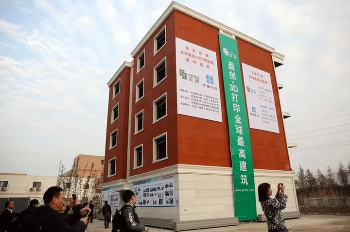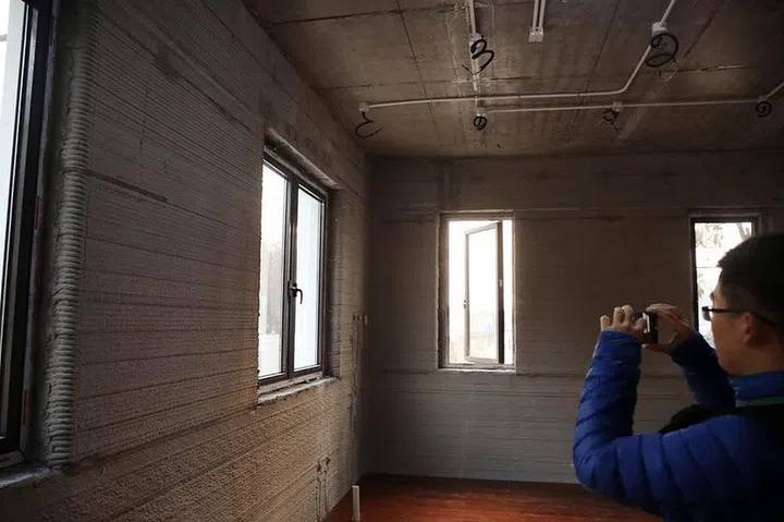 WinSun CEO Ma Yihe told the press that they used a special quick-dry cement to speed up the process and purchased parts for the printer before assembling the machine in a factory in Suzhou.