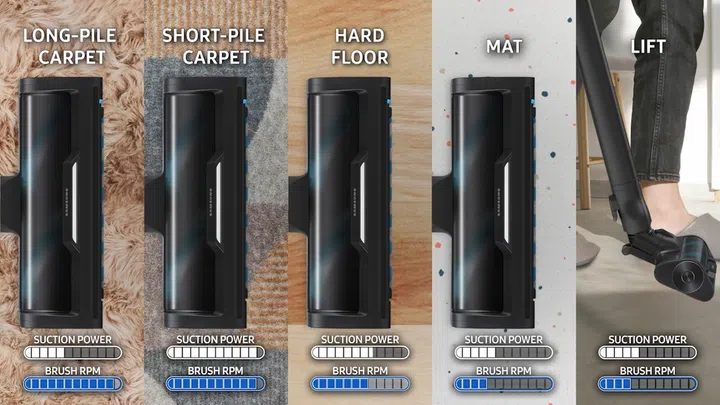 Wonder what has AI got to do with vacuum cleaners? Samsung Bespoke AI Jet cordless stick vacuum was first launched in May 2023. The latest Samsung Bespoke AI Jet Ultra and Lite have an intelligent optimised cleaning mode that automatically detects floor types such as carpets or tiles, and adjusts suction power and brush speed accordingly, optimising cleaning performance and up to 21% reduced battery usage.