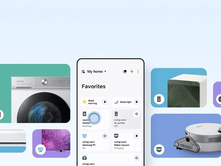 Samsung Bespoke AI appliances are all compatible with the Samsung’s SmartThings mobile app. You can manage all connected Samsung devices from a single mobile app, creating home routines and automations tailored to your lifestyle. Think of it like a Google Home or Apple HomeKit smart home system.