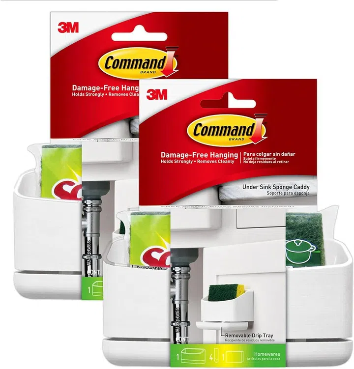Pack includes two caddies, eight medium strips, and two Scotch-Brite sponges. You get two packs of this.
