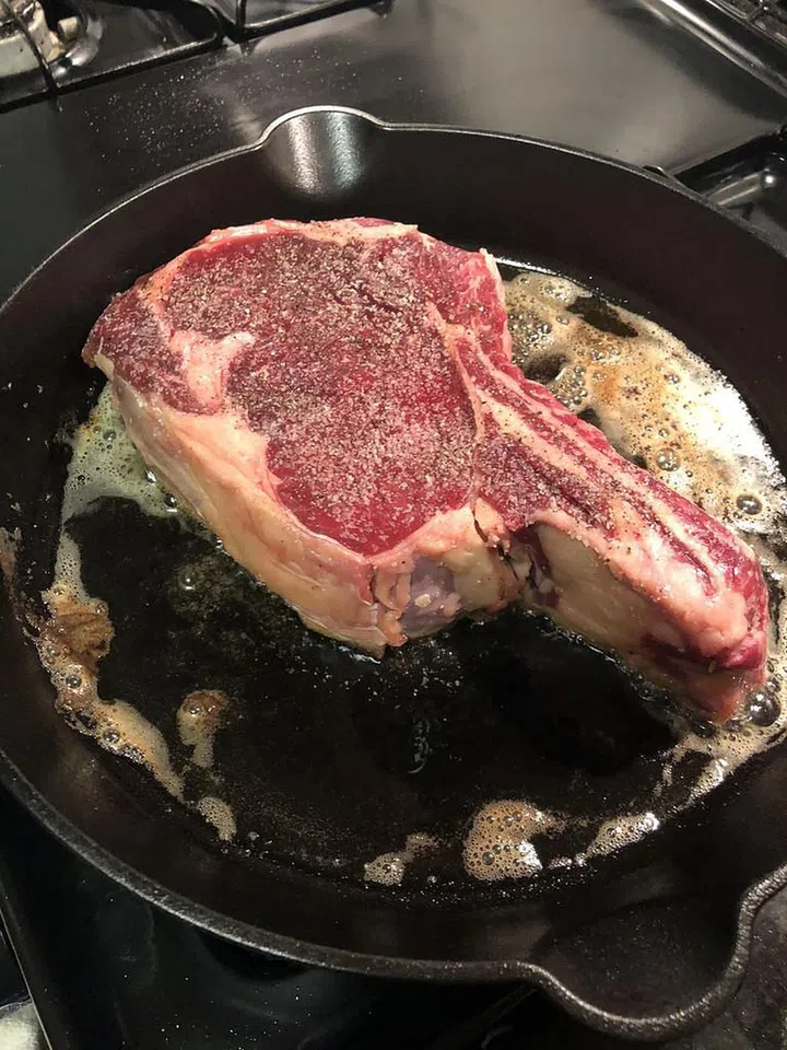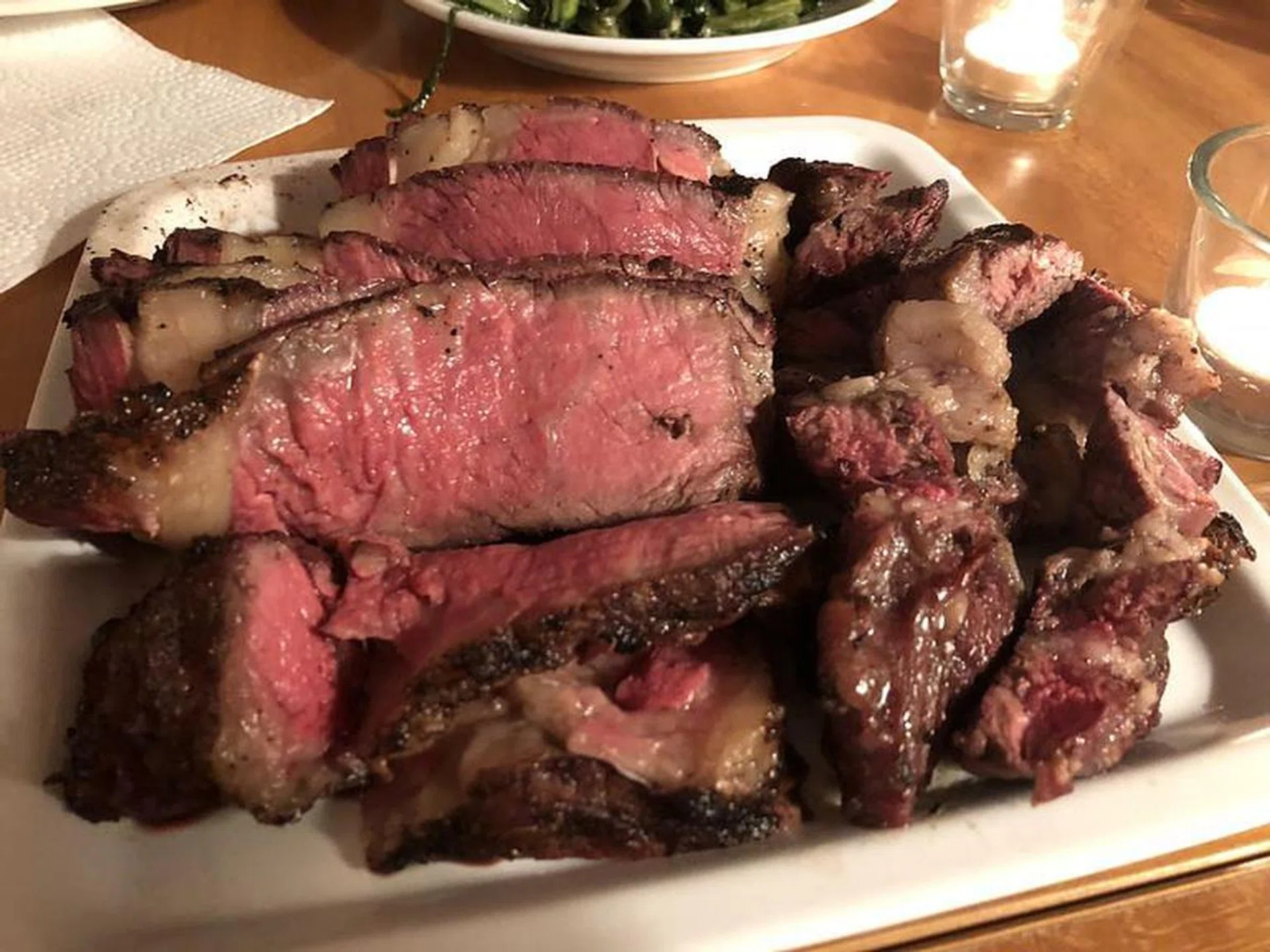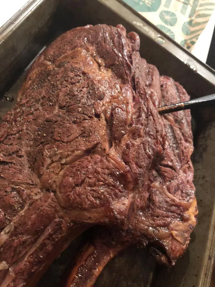 And if you’re using a smoker, like a Big Green Egg, the range can drop to about 10 or so feet. But if smoke and air can escape from your smoker, then so can the radio frequency required for the probe, so you should be fine. I used the Meater in a Tomahawk cut on a Big Green Egg and it came out absolutely perfect. Proof: