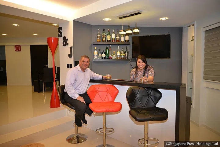 Ms Joanne Chan, who runs a translation company, with her husband, wealth manager Stephen Couch, at their four-room HDB flat in Tampines. They have bought most of their furniture over Taobao and Tmall, including a standing lamp, roller blinds, four bar stools and practically all the lights in their flat.