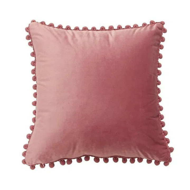 This plush cushion cover (45 x 45 cm) adds texture and comfort to any sofa or bed with its classic velvet finish and playful pom pom detail. Also available in grey and ivory.