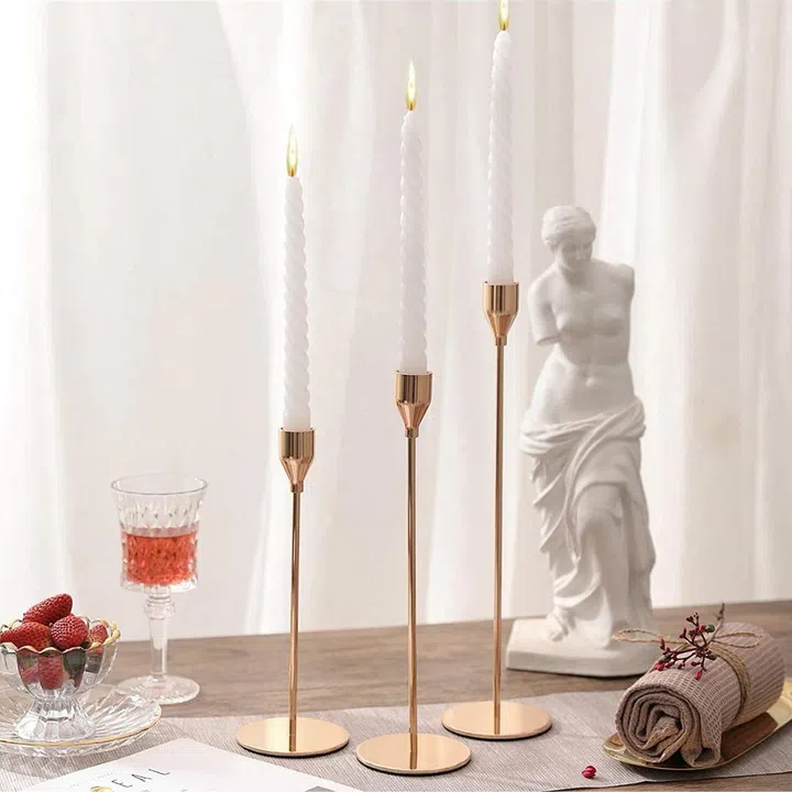 Instantly transform your dining table into a romantic Valentine's Day dinner for two with these candlestick holders. With three different heights, these candle holders fit all standard size candles and LED taper candles.