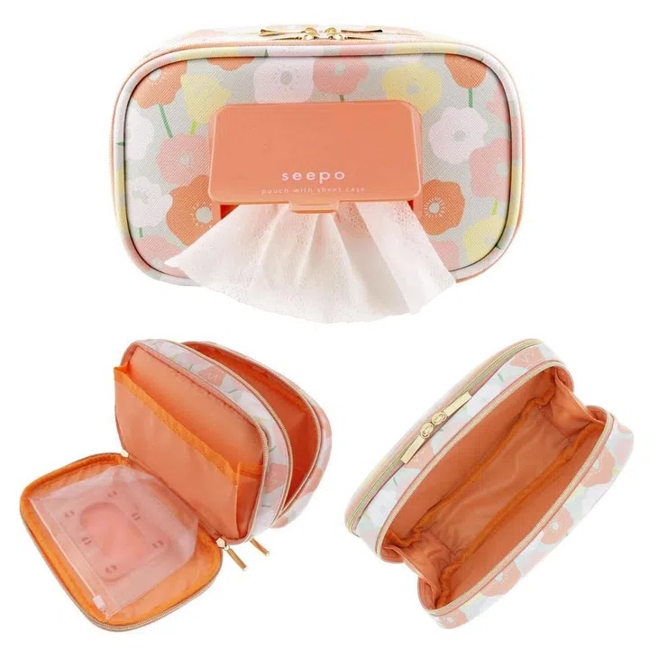 This kawaii cosmetic pouch has a unique separate compartment to store your tissues, wet wipes or baby wipes separately. It’s great to use while you’re out and about, or can even work well in your makeup station as you get ready for the day. If flowers aren’t your thing, it’s also available in other colours and patterns.