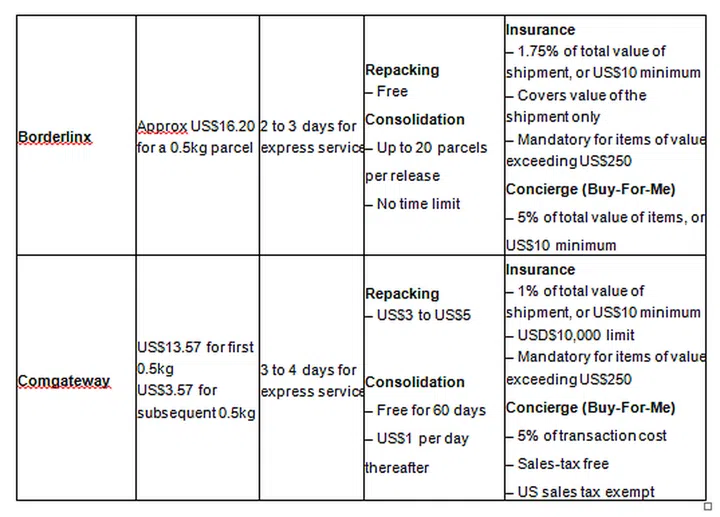 We’ve done a simple comparison of the rates and benefits offered by different forwarding services: EZBuy (formerly 65daigou), VPost, Borderlinx, and Comgateway. Which is the cheapest, and which offers the most value for money?