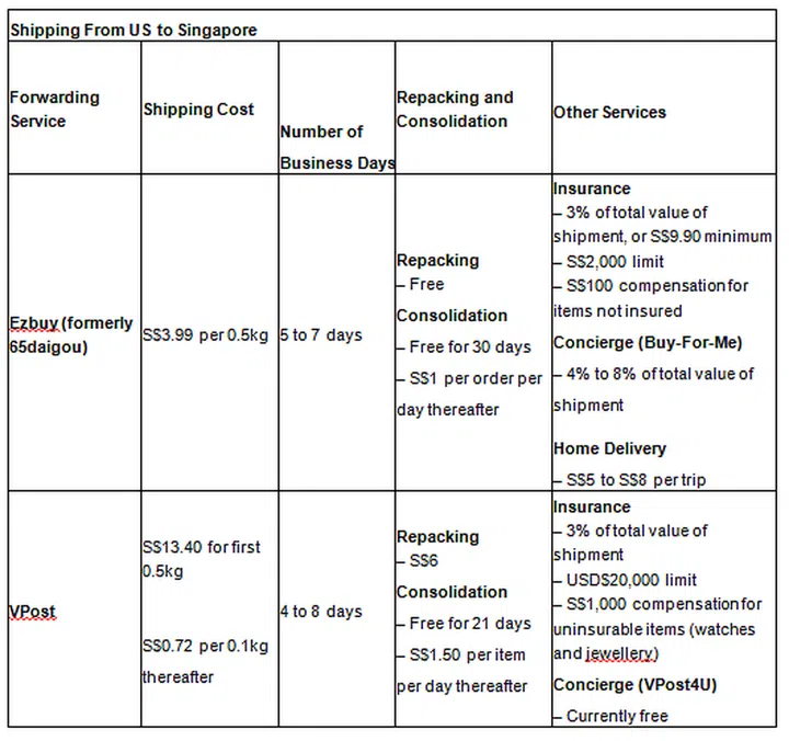 Did you know that you can save money when shipping your items from the US to Singapore, if you pick the right forwarding service?