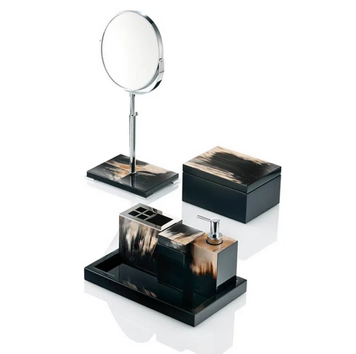 These bathroom essentials will give any vanity countertop a luxe upgrade. Handmade in Italy and set in dark horn and black laquer, they rid you off gaudy packagings and the commonly-used mason jars. These retail from $190 to $455, and are available at Decorator's Notebook.