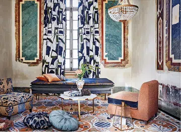 Living room design ideas: Matching furniture upholstered in printed and patterned fabric